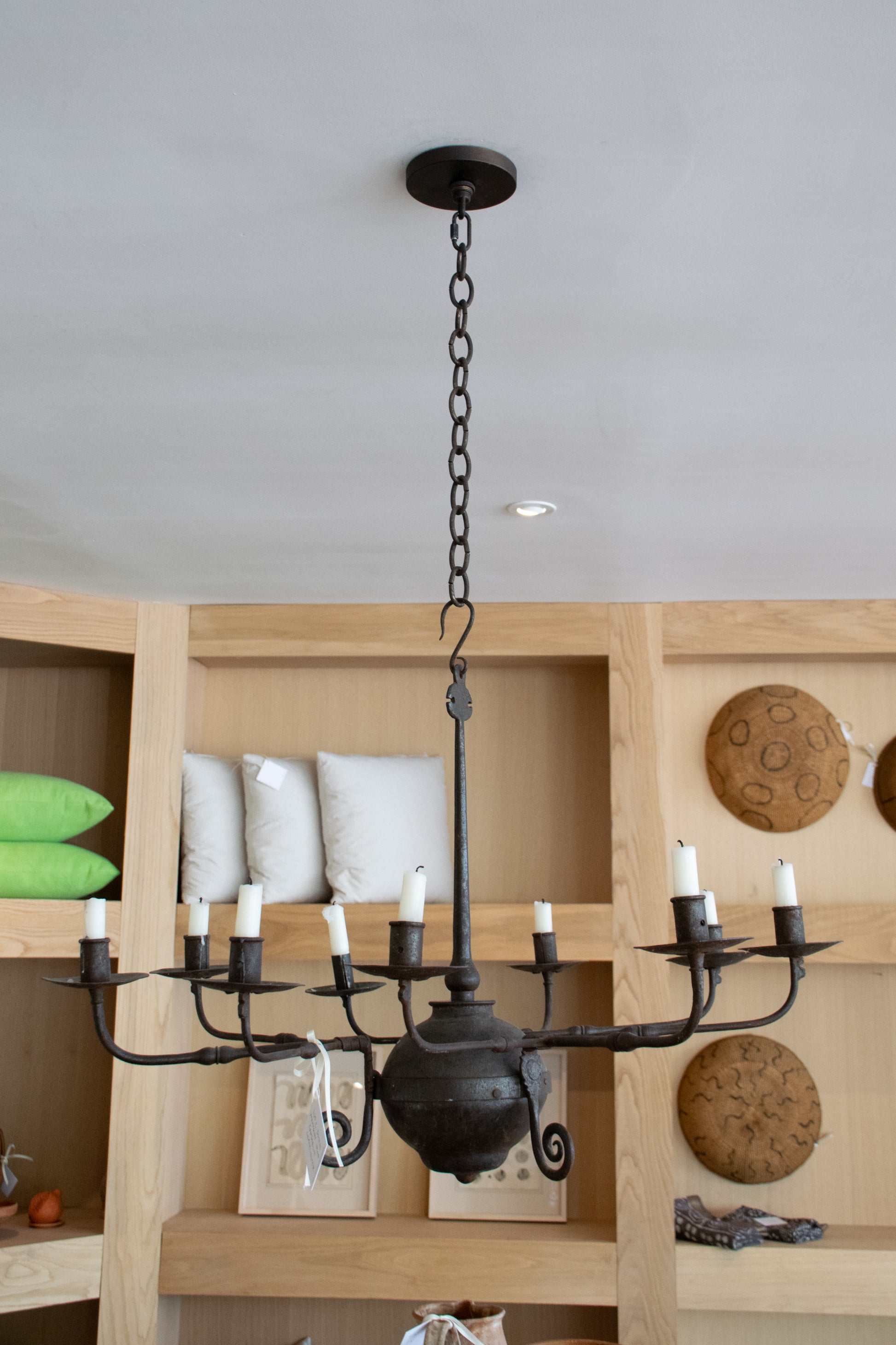 20th C. Wrought Iron 9-Arm Candle Chandelier