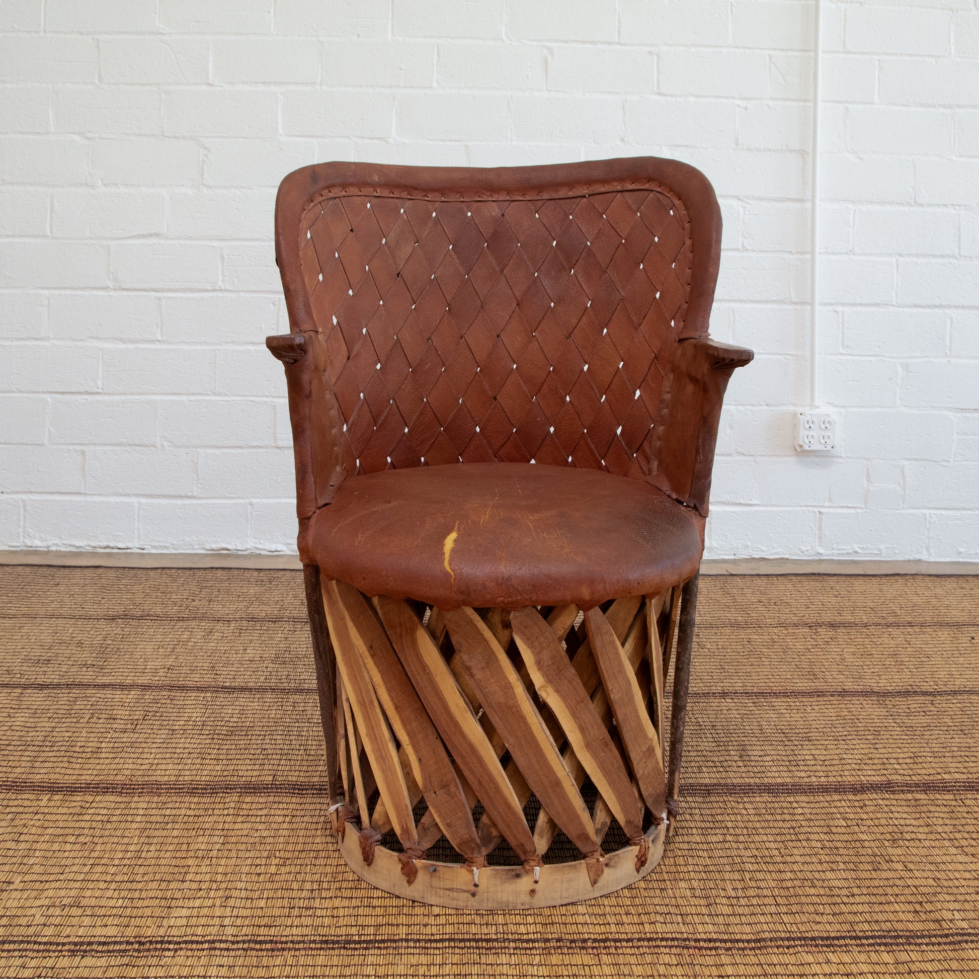 Equipale Armchair with Lattice Wood and Original Leather Seat, Back and Arms