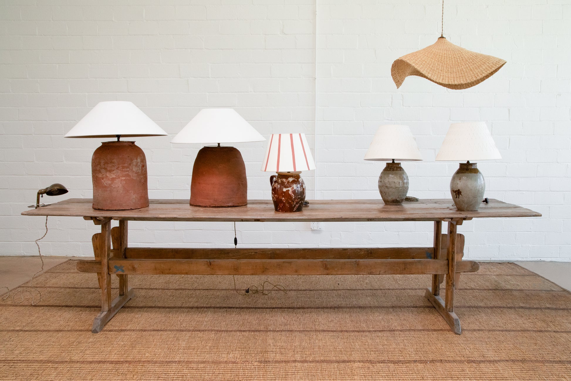 Vintage Terracotta Jug Lamps with Linen Coolie Shade (Each Sold Separately)